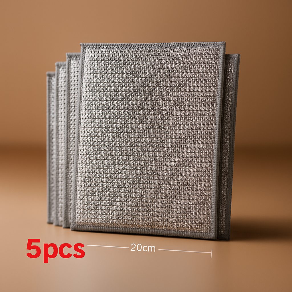Chega de esponjas que riscam ou se desfazem rápido. Conheça o Pano de Limpeza Dupla Camada com Arame de Aço e Microfibra – resistência e suavidade na medida certa para sua rotina!